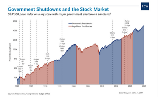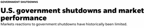 Historically, government shutdowns have happened on a relatively regular basis over the last 50 years and have not had a significant negative impact on either the economy or markets over time.